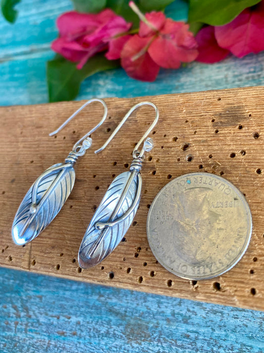 Silver Feather Dangle Earrings